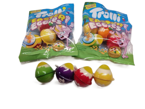 Složení: glukózový sirup, cukr, dextróza, vepřová želatina, kyselina: kyselina citronová, aromata, želirující látka:pektiny, barvivo: kurkumin, potravinová barviva(mrkev,kurkuma), leštící látky:včelí vosk, bílý a žlutý.