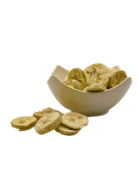 Složení: Banán plátky sušené mrazem 100% Výrobek může obsahovat stopy arašídů, ostatních skořápkových plodů a sezamu.