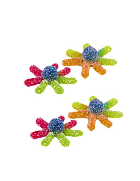 Složení: Glukózový sirup, cukr, voda, želatina, zvlhčovadlo (glycerol), želírující látka (acetylovaný škrob), kyseliny(kys.mléčná, kys. jablečná, kys. citronová), regulátor kyselosti (laktát sodný, E350), barviva: brilantní modř CFC, E102, E110, E129
