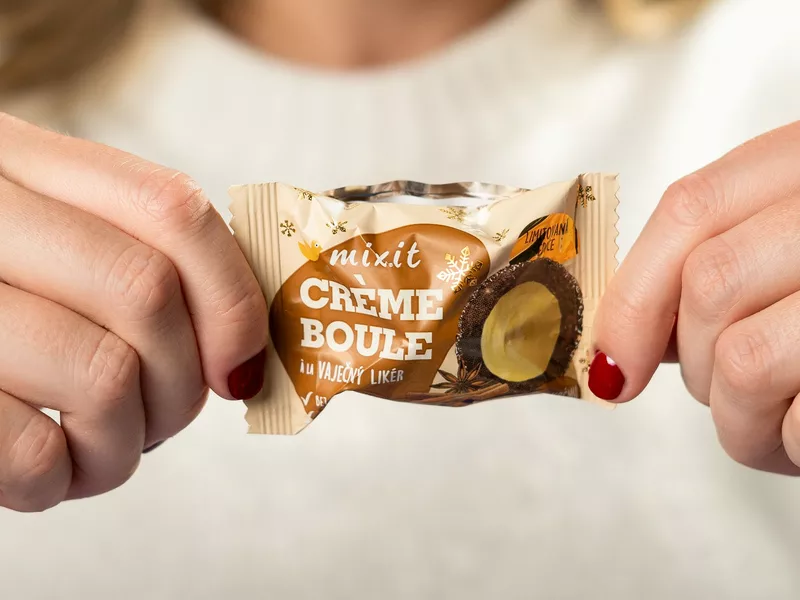 Uvnitř každé boule se ukrývá sametově jemný krém, který tvoří celých 30 % obsahu. Voní po svátcích a chutná tak lahodně, že si ho oblíbí i ti, kteří běžně vaječný likér nemusí. A samozřejmě neobsahuje ani kapku alkoholu, takže je tahle Crème boule vhodná i pro malé Mixiťáky.