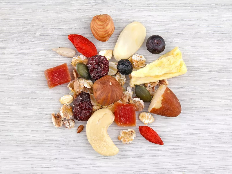Müsli se sušeným ovocem a ořechy