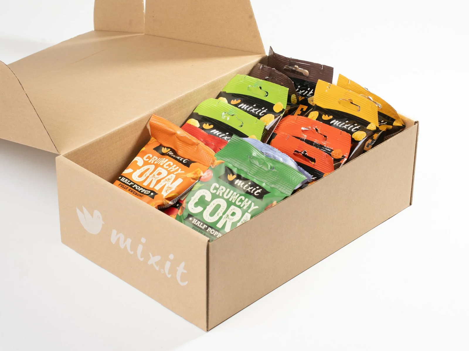 Uvnitř najdete všechny příchutě našeho jedinečného half-popped popcornu ve slané variantě a také cheddaru do kapsy.