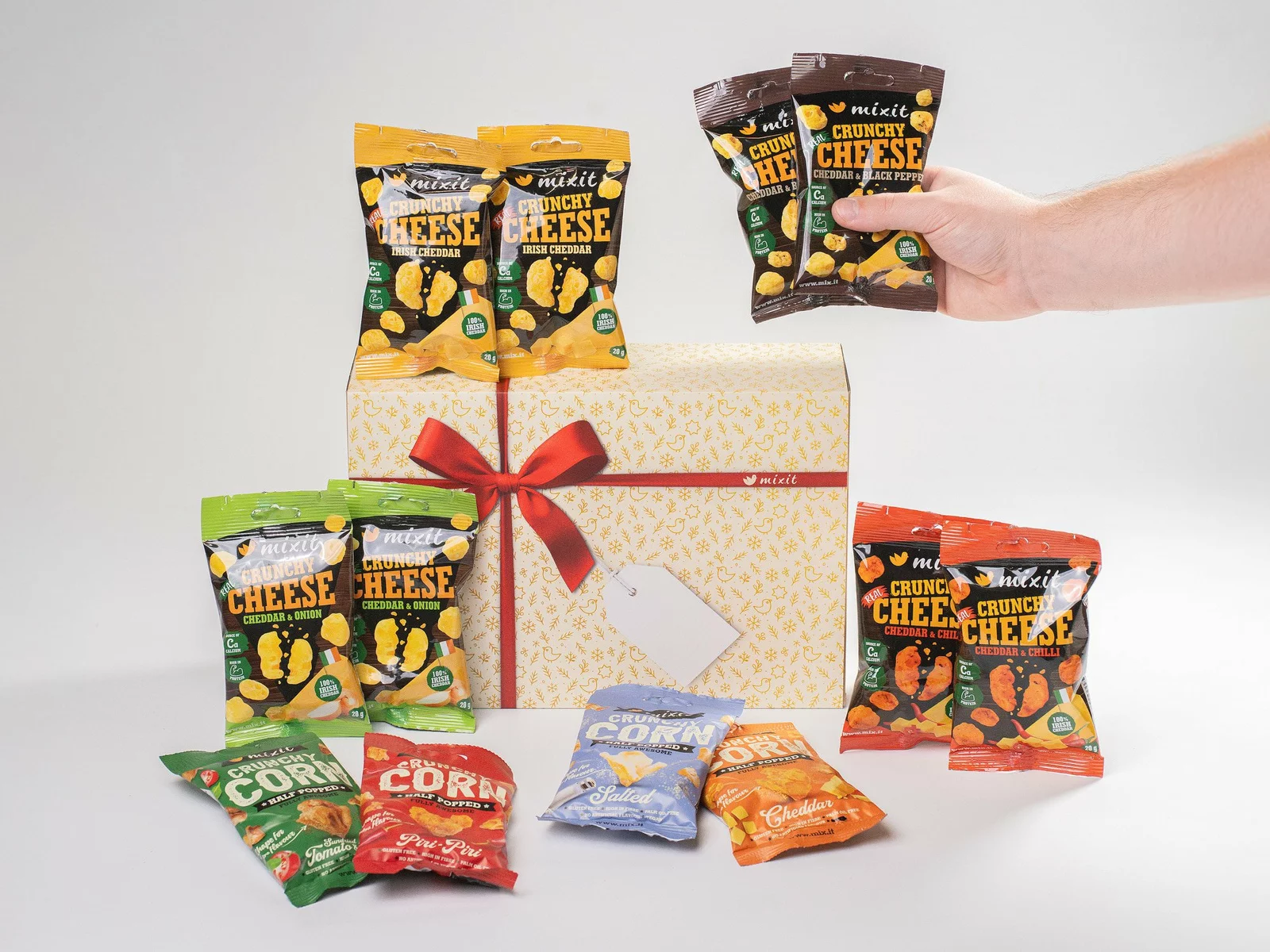 2x Křupavý sýr do kapsy – Irský cheddar (20 g), 2x Křupavý sýr do kapsy – Irský cheddar & cibule (20 g), 2x Křupavý sýr do kapsy – Irský cheddar s černým pepřem (20 g), 2x Křupavý sýr do kapsy – Irský cheddar s chilli (20 g), 1x Crunchy corn do kapsy – Piri Piri & Kajenský pepř (40 g), 1x Crunchy corn do kapsy – Mořská sůl (40 g), 1x Crunchy corn do kapsy – Cheddar (40 g), 1x Crunchy corn do kapsy – Rajče & bazalka (40 g)