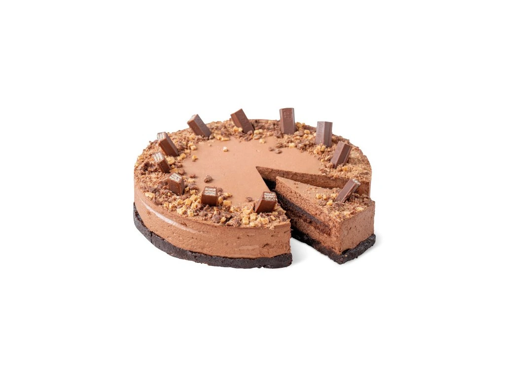 Lahodný čokoládový dort se základem z rozemletých KitKat sušenek s KitKat pomazánkou, s bohatou vrstvou krému ze smetany a čokolády.