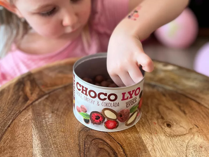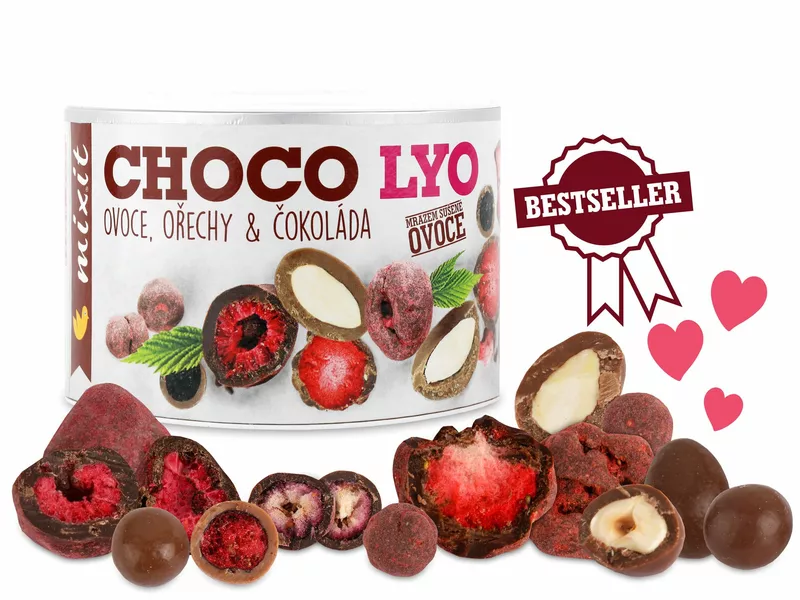 Naše Choco Lyo je láska na první ochutnání. No uznejte sami – vzali jsme prvotřídní hořkou a mléčnou čokoládu, ve které jsme obalili mrazem sušený rybíz, maliny, jahody, borůvky, lískové oříšky a mandle. Tomu zkrátka nejde odolat. 🙂