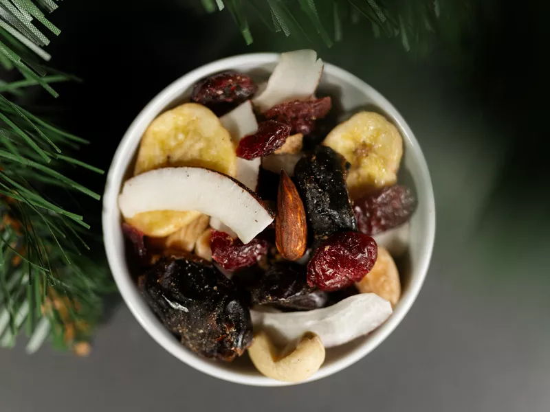 Mik, miku, Mikulášské nadělení do kapsy! Pro všechny hodné děti jsme namixovali ořechy, kokos, brusinky, mini fíky, medový banán a další zdravé zobání. Tahle nadílka se vejde do kapsy a je bez lepku, umělých barviv a palmového oleje. Mikuláš bude mít co dělat, aby vyladěnou směs ořechů a ovoce nesnědl dětem cestou. 🙂