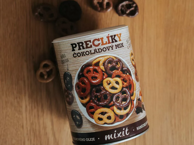 Na začátku všeho byly jemně solené, do křupava pečené preclíky. Ty jsme pak ponořili do lázně z mléčné, hořké i bílé čokolády se slaným karamelem, a tak vznikly naše poctivé Mixit preclíky, na kterých si pochutná celá rodina.