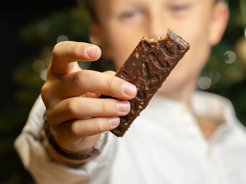 Datlová tyčinka s ovocem, ořechy a lyofilizovaným pomerančem