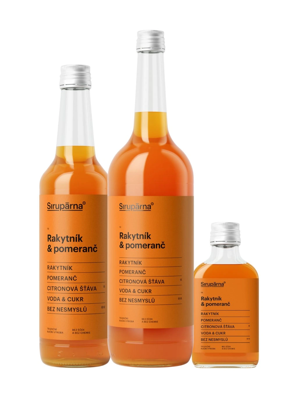 Spojení výrazného rakytníku s jemně sladkým pomerančem přináší šťavnatý sirup plný vitamínu C.