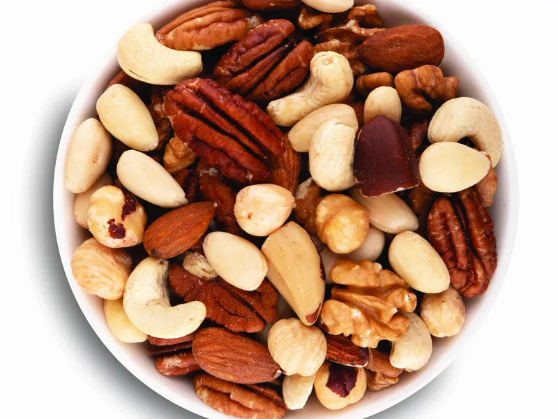 para ořechy 17 %, jádra kešu ořechů 17 %, mandle 15 %, vlašské ořechy 14 %, mandle loupané 14 %, pražené lískové ořechy 13 %, jádra pekanových ořechů 10 %