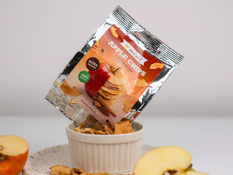 Že chipsy nemohou být zdravé? Naše Jablečné chipsy vás přesvědčí o opaku. Vzali jsme najemno nakrájené plátky jablíček, usušili je a následně obalili ve skořici. Žádné další ingredience, než jablka a skořici jsme nepoužili, a vy si tak můžete pochutnat bez výčitek. A díky praktickému balení do kapsy si tuhle svačinku můžete vzít kamkoliv.