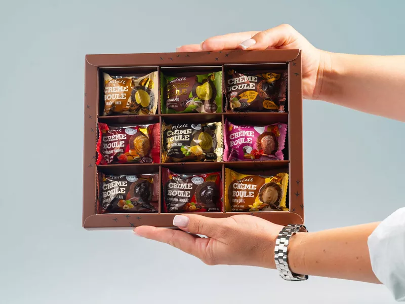 Bouleniéra je splněným snem všech fanoušků Crème boulí – v designovém balení na vás čeká devět různých druhů těchto lahodných datlových koláčků. Těšit se můžete na průřez naší nabídkou – od čokoládové klasiky přes bestsellery s lyo ovocem až po exkluzivní novinku à la vaječný likér.