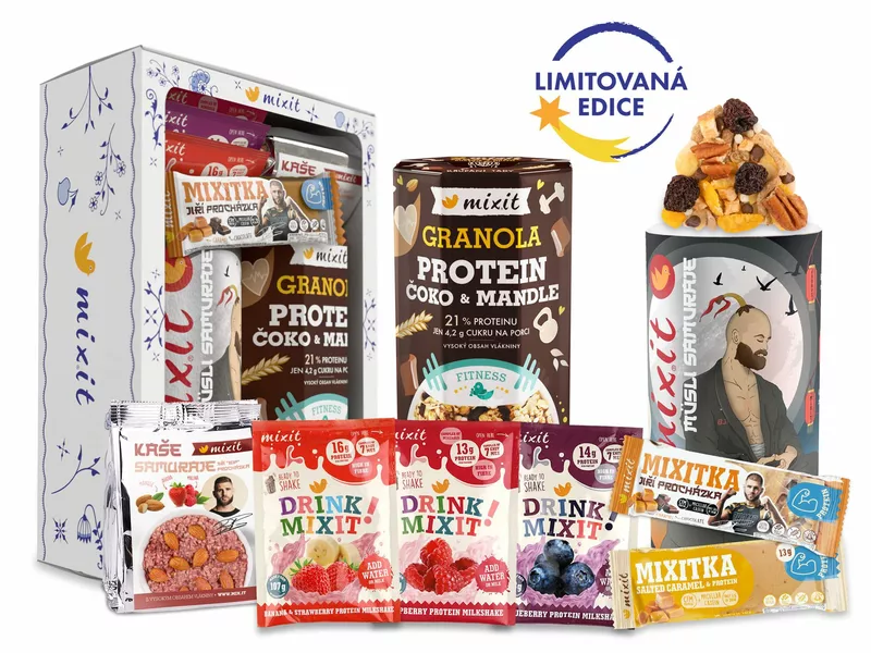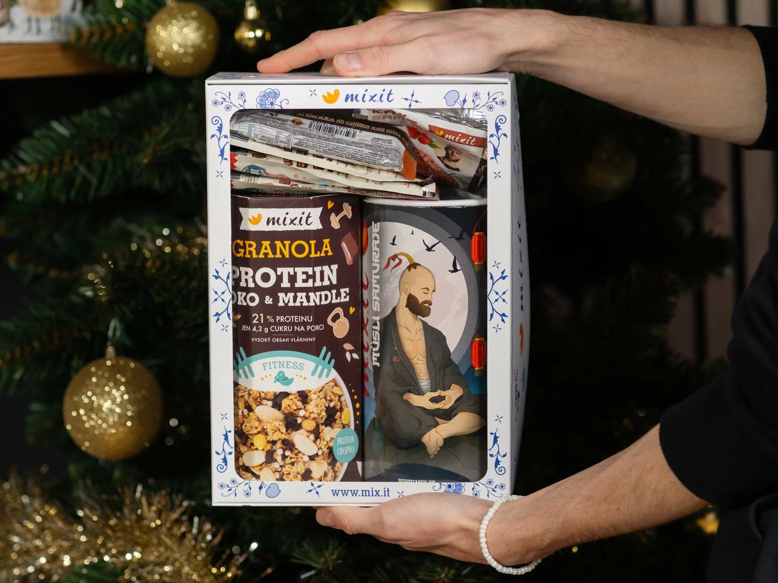 Když chcete pod stromečkem opravdu zabodovat u sportovců a milovníků aktivního životního stylu, tahle sada je sázkou na jistotu. Kombinujeme v ní totiž produkty, které skvěle chutnají, ale zároveň jsou plné bílkovin. Najdete v ní hned tři druhy proteinových Mixit Drinků s opravdovým lyo ovocem (Banán & jahoda, Malina a Borůvka), proteinovou granolu, ale i produkty namixované ve spolupráci s našimi ambasadory – těšit se můžete na kaši, müsli i Mixitku Samuraje Jirky Procházky a karamelovou Mixitku bez lepku. Tímhle dárkem zaručeně potěšíte!
