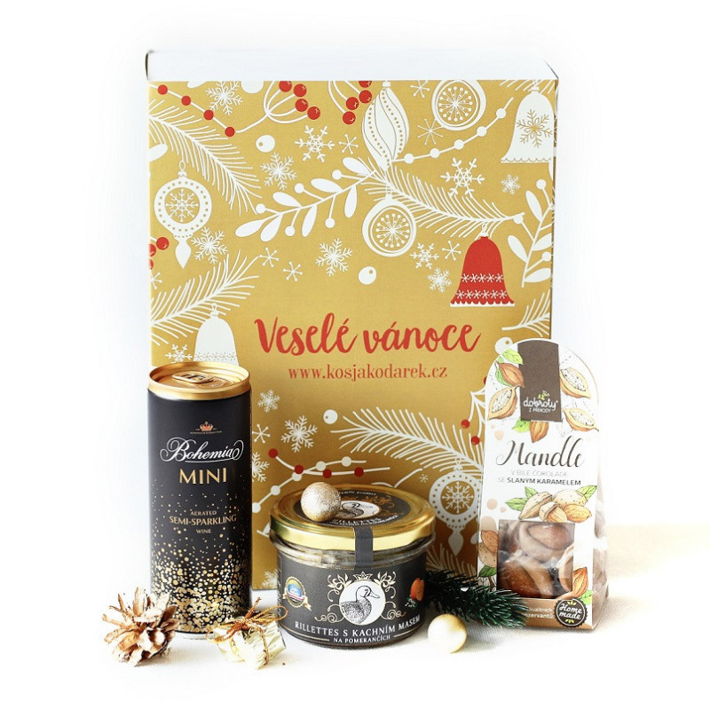 Vánoční krabička zlatá s Bohemia sektem.