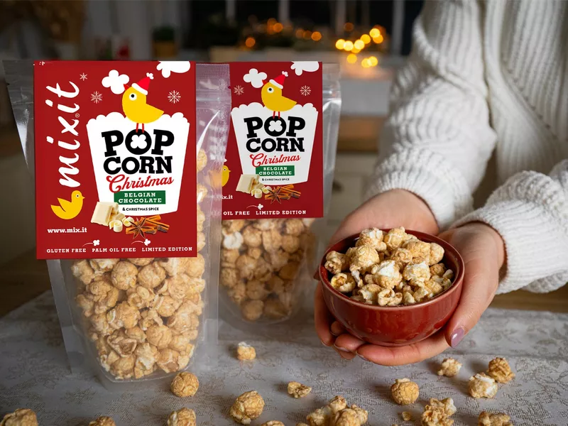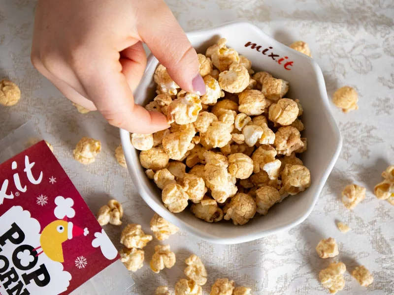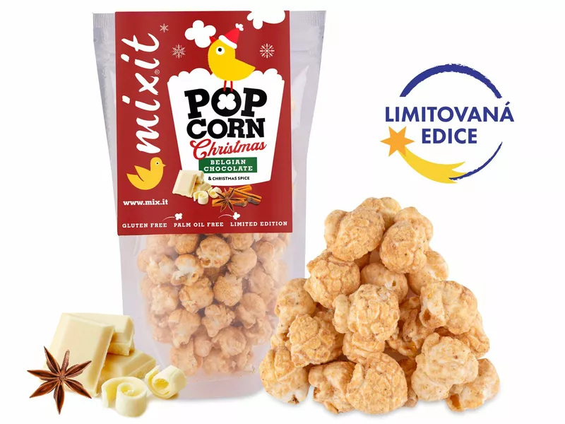 Mixit popcorn je však dílem pečlivě vybraných ingrediencí. Každé vypukané zrnko kukuřice jsme vlastnoručně vykoupali v bílé belgické čokoládě s vanilkou a obalili v perníkovém koření, ve kterém hraje prim voňavá cejlonská skořice, hřebíček a badyán.